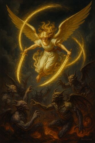 Fora do catecismo cristão, e de seu modo impositivo de pensar, os anjos não são opostos nem são mais bonitos que os demônios (até pelo contrário), mas muitos demônios (deuses antigos) são também anjos (tem parte na criação e leis do universo), e diversos seres tidos por anjos são na verdade demônios (personificação de desejos e mistérios).