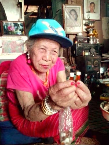 Ajarn encaminhou os espíritos em troca de usar seus pós com lascas de cristais neste talismã que ficou muito famoso por relatos de ter livrado pessoas de problemas e catástrofes ou acidentes.