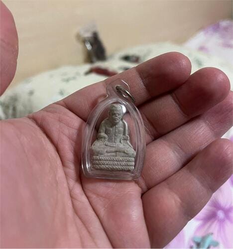 Eu consegui em 2019 um talismã de Ajarn Fon, feito por seus discípulos com o pó de seus ossos num aniversário de sua passagem, onde foi invocado o espírito do próprio Ajarn Fon para abençoar os talismãs.
