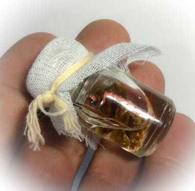 Outra coisa interessante era que o Nam Man Prai de Ajarn Wara era realmente “sugado” e evaporava de dentro do frasco ou era “tomado” pelo talismã que banhava.