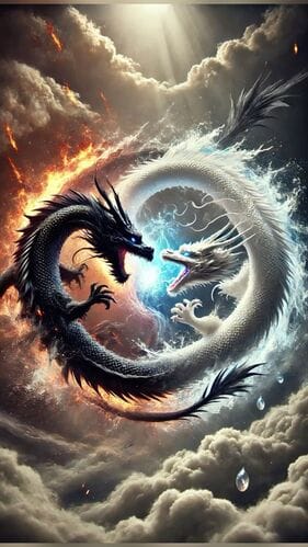 O dragão que é a estrela do Oriente, tem duas cabeças num corpo só, uma preta e uma branca, e vivem em constante conflito que gera a harmonia, e é dessa simbologia que surgiu o Yin e Yang, que é base do ocultismo, filosofia, esoterismo e cultura orientais.
