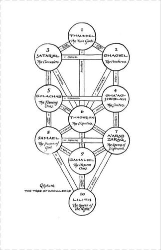 Saiba agora que as Qliphot são os caminhos da Árvore da Morte, estudada e representada na Sitra Ahra, são pontos de força desta árvore sombria que desce para baixo das raízes, ao contrário da árvore da vida, e cada qual tem um nome e potência ligados à “deuses demônios” e conceitos humanos da nossa natureza e seus excessos.